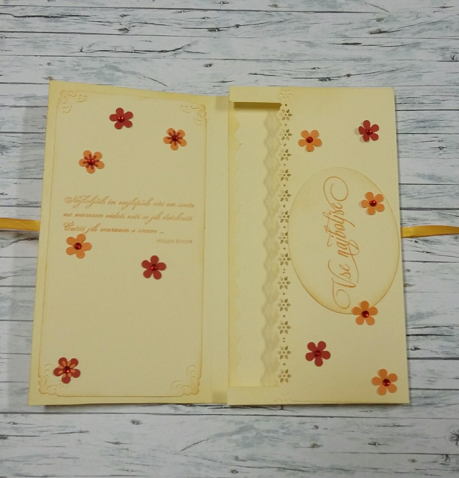 Super si packala in nastala je lepa voščilnica s sladkim presenečenjem v notranjosti.